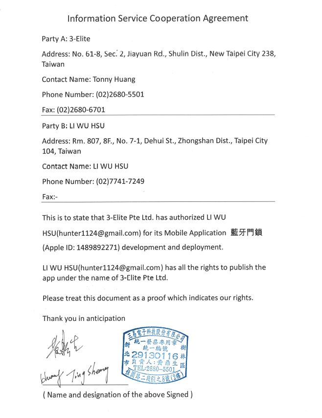 ˊBT door lock APP for IOS Service