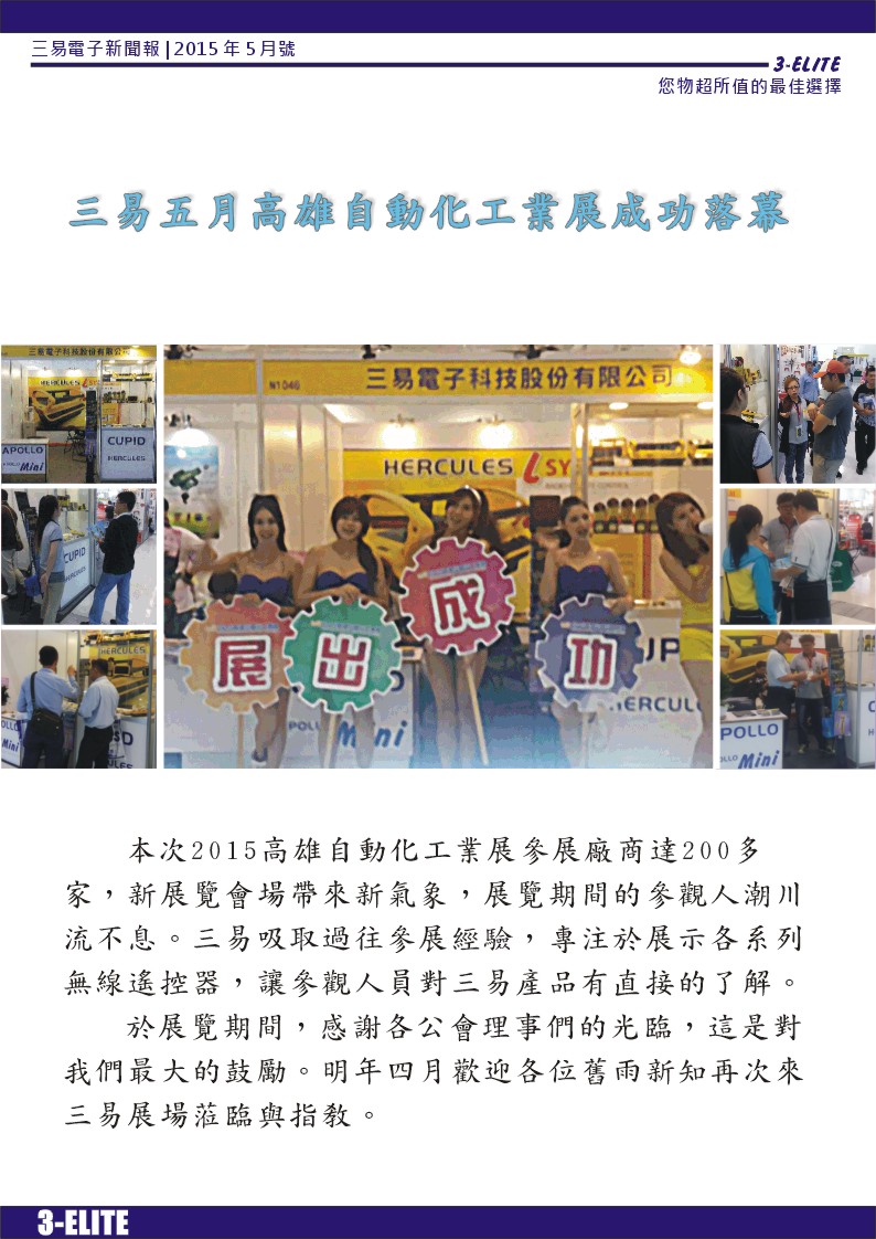 2015年5月三易五月高雄自動化工業展成功落幕