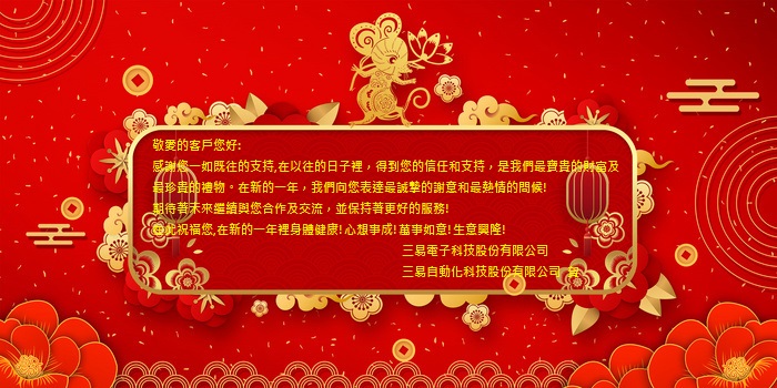 三易電子由1/23~29春節休假,在此也祝福各位新年快樂,感謝各位歷年來的支持鼓勵,