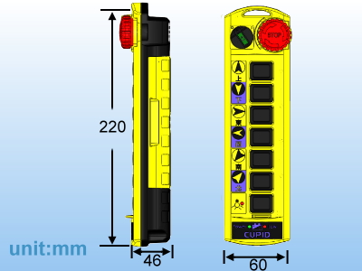 | 規格 | 單速6點型+1只照明鍵+壓入旋出急停開關,遙控距離100M |