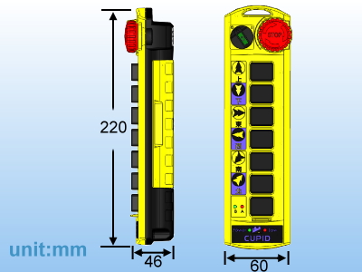 | 規格 | 雙速6點型+1只3段功能鍵+壓入旋出急停及電源開關,距離100M<可設定A/B/A+車功能> |