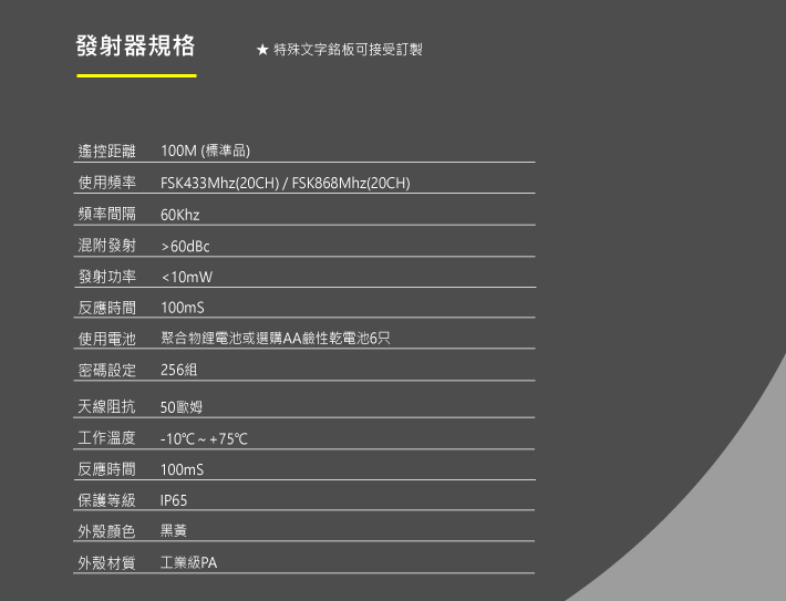 適用:發射器使用充電電池