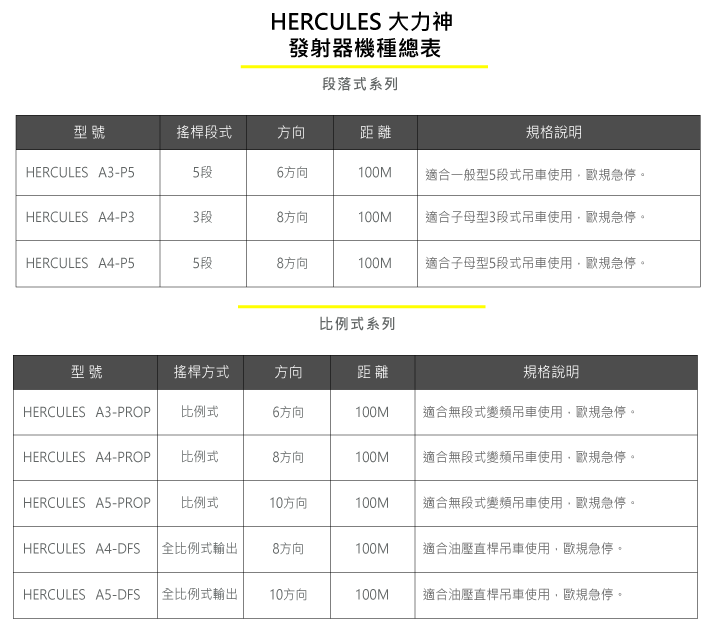 適用:大力神A系列發射器