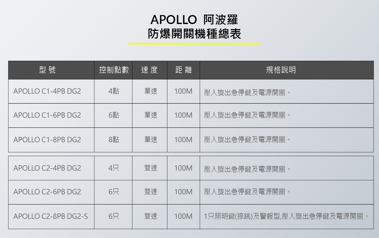 4點單速型+壓入旋出急停鍵+電源鑰匙,距離100M